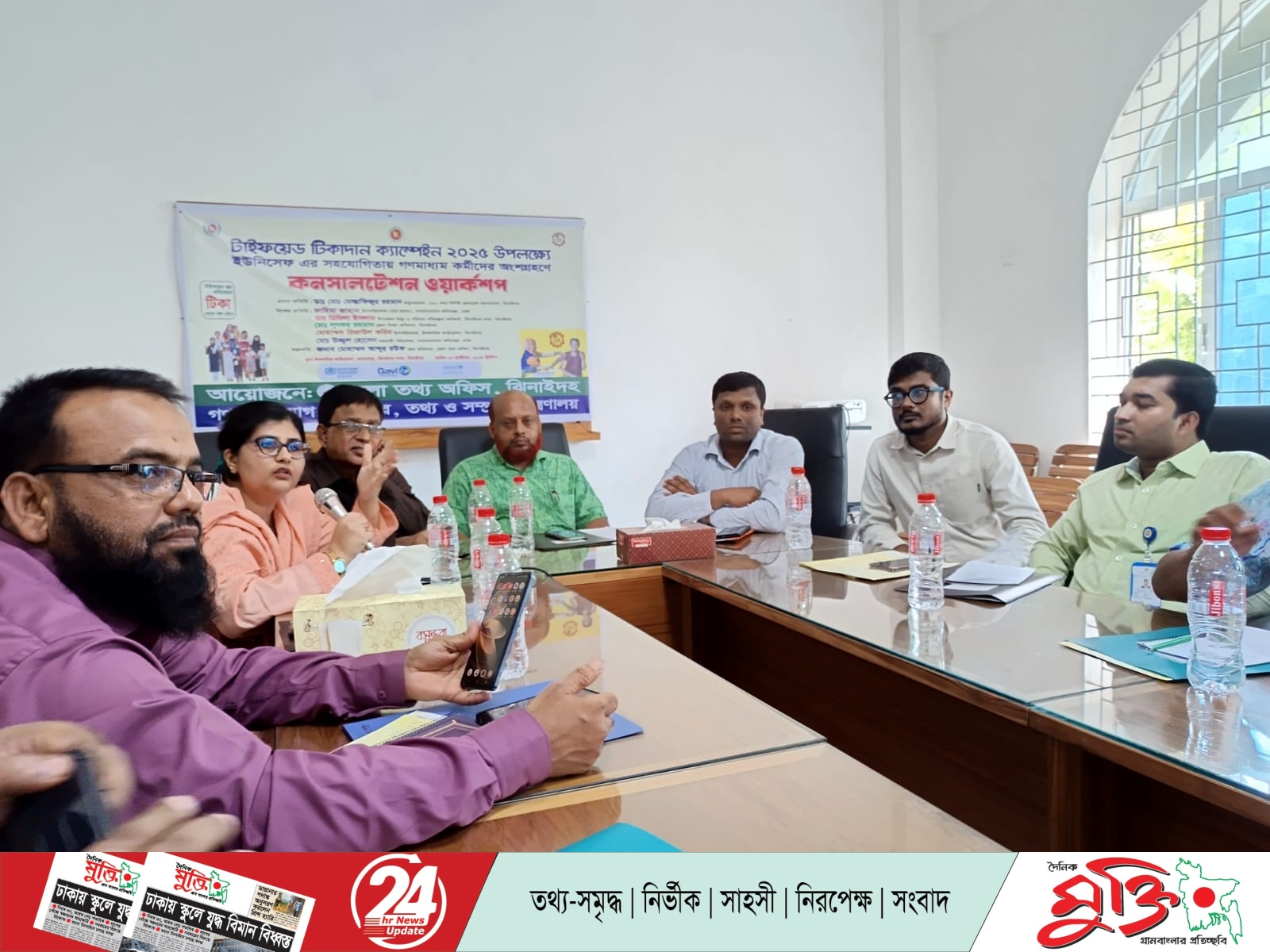 ঝিনাইদহে টাইফয়েড টিকাদান ক্যাম্পেইন ২০২৫ বাস্তবায়ন উপলক্ষে গণমাধ্যম কর্মীদের সঙ্গে এক কনসালটেশন কর্মশালা অনুষ্ঠিত হয়েছে। মঙ্গলবার (৭ অক্টোবর) দুপুরে জেলা শহরের আরাপপুর ইসলামিক ফাউন্ডেশন কার্যালয়ের সম্মেলন কক্ষে আয়োজিত এ কর্মশালায় জেলার প্রায় ৪০ জন সংবাদকর্মী অংশগ্রহণ করেন।