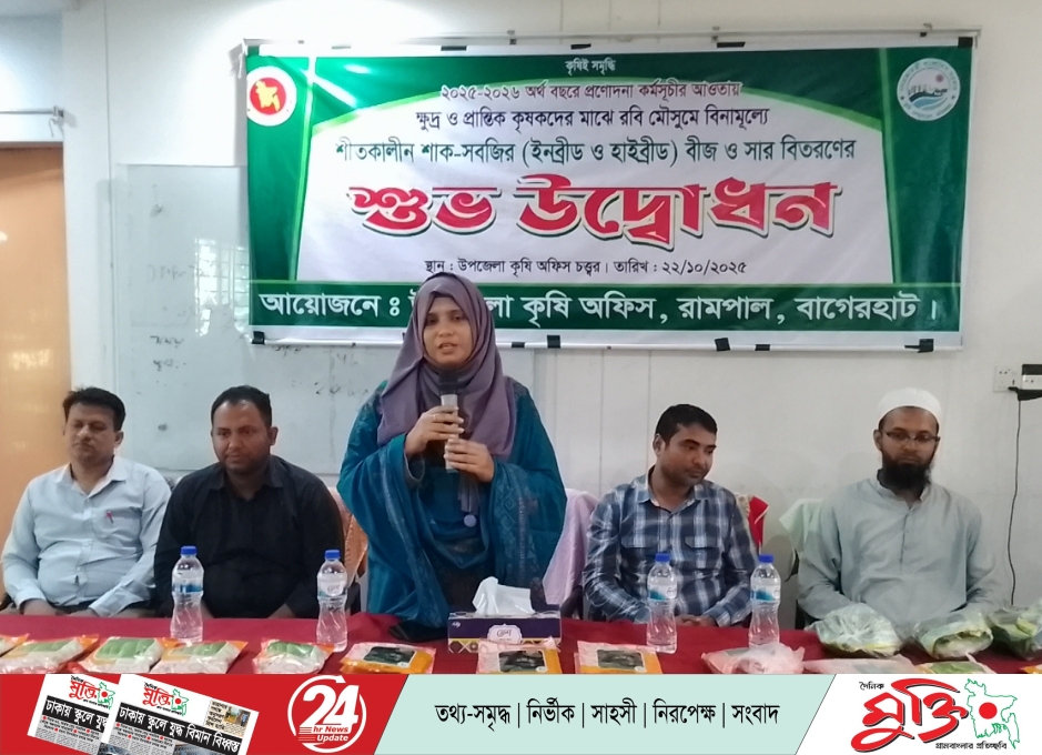 বাগেরহাটের রামপাল উপজেলায় ২০২৫-২৬ অর্থবছরের প্রণোদনা কর্মসূচির আওতায় প্রান্তিক কৃষকদের মাঝে শীতকালীন সবজির বীজ ও সার বিতরণ করা হয়েছে। বুধবার (২২ অক্টোবর) দুপুরে উপজেলা কৃষি অফিসের অডিটোরিয়ামে এক অনুষ্ঠানের মাধ্যমে ৪৭০ জন কৃষকের হাতে ১২ প্রকার শীতকালীন শাকসবজির বীজ ও ২০ কেজি করে সার তুলে দেন কর্মকর্তারা।