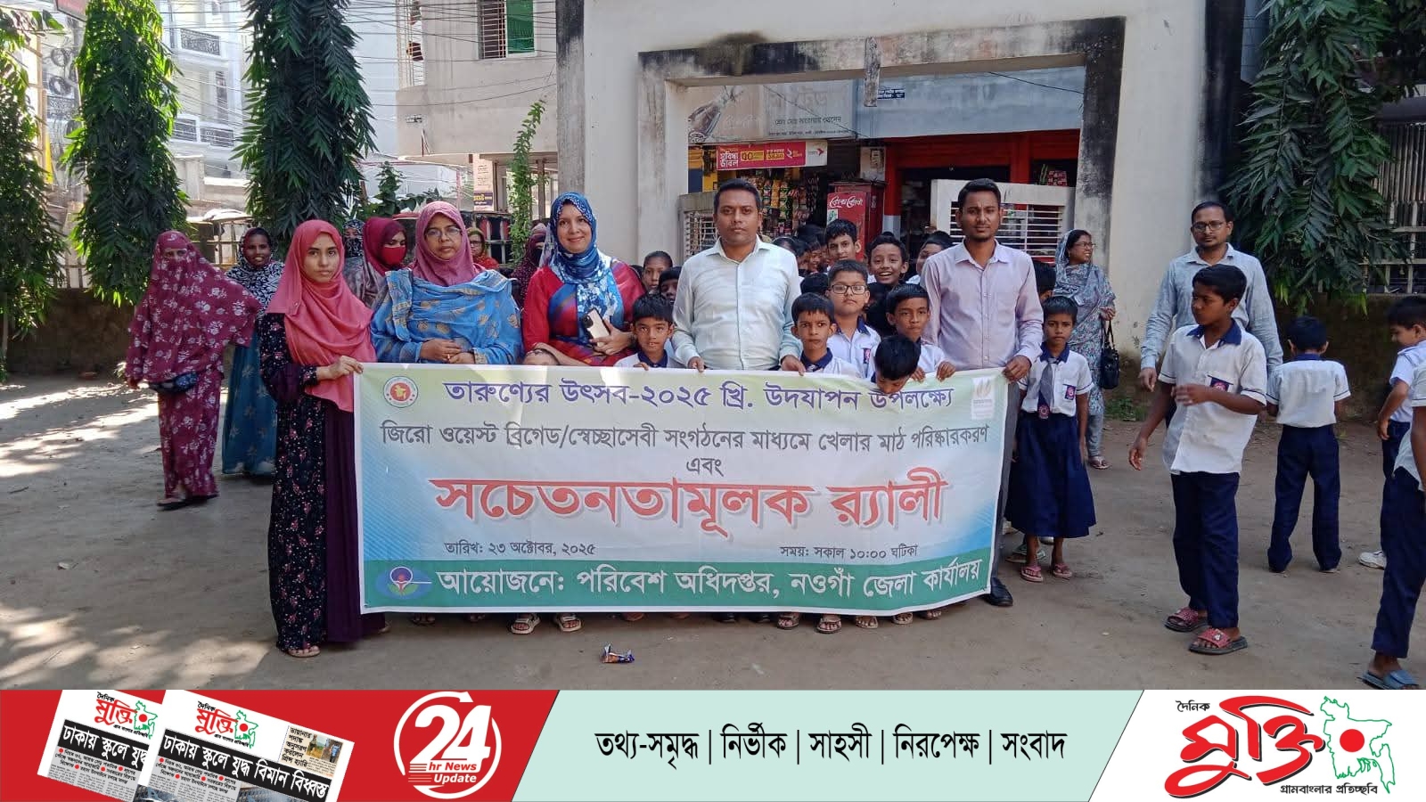 নওগাঁয় পরিবেশ অধিদপ্তরের উদ্যোগে “তারুণ্যের উৎসব–২০২৫” উপলক্ষে অনুষ্ঠিত হয়েছে নানা বর্ণাঢ্য কর্মসূচি। বুধবার (২৩ অক্টোবর) সকাল থেকে দিনব্যাপী এসব আয়োজনের মধ্যে ছিল সচেতনতামূলক র্যালি, পরিষ্কার অভিযান, গাছ রোপণ এবং চিত্রাঙ্কন প্রতিযোগিতা।